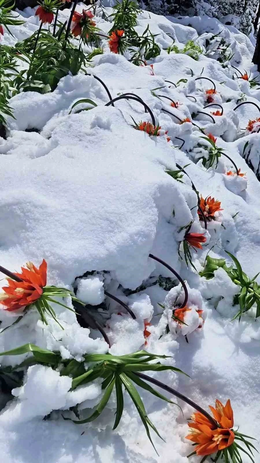 Bingöl’de önceki gün etkisini gösteren kar yağışı nedeniyle ters laleler kar altında kaldı.