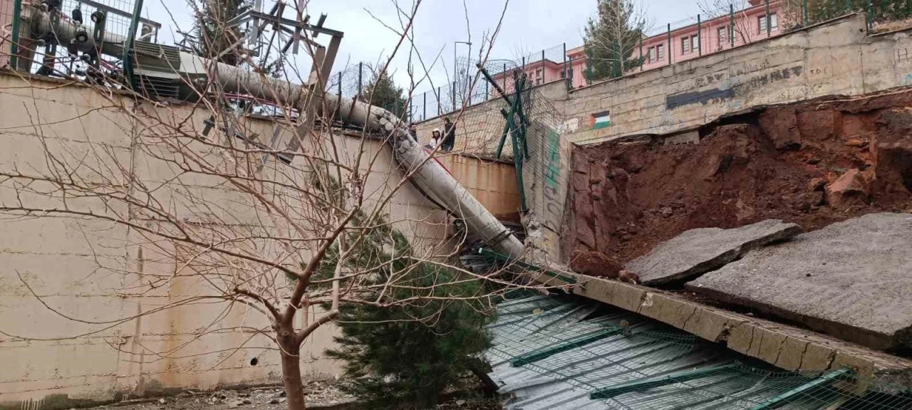 Çökme sırasında okulun elektrik trafo direği yerinden sökülerek kırıldı, jeneratör duvarın altında kaldı ve otobüs durağı metrelerce sürüklendi. Olayın ardından bölge güvenlik çemberine alınarak yol trafiğe kapatıldı.