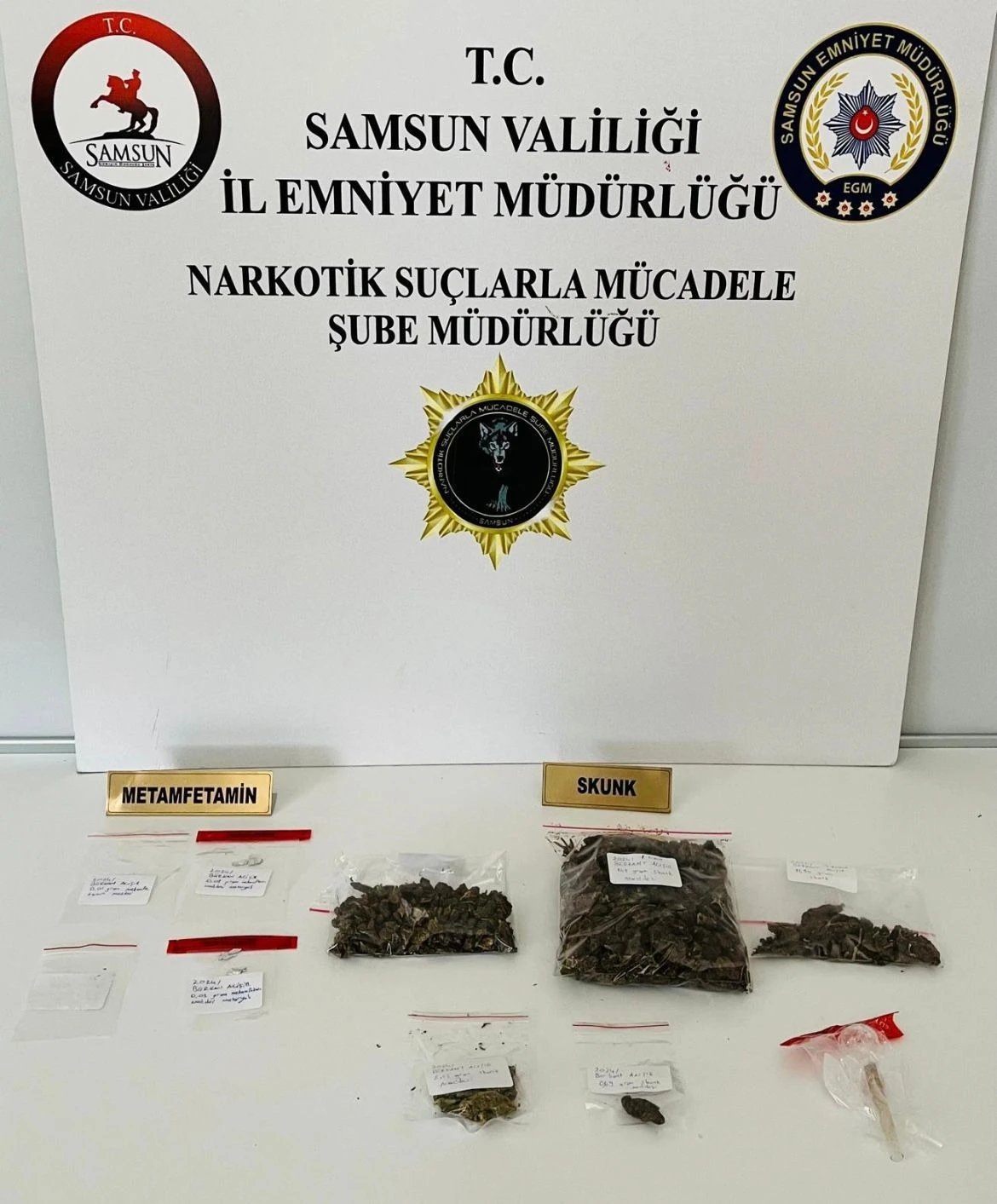 İl Emniyet Müdürlüğü ekipleri, uyuşturucu ticaretini önlemeye yönelik çalışmalar kapsamında İlkadım ilçesinde B.A. (25) isimli şahsın ikametinde arama yaptı. Yapılan aramada 195 gram skank, 0,20 gram metamfetamin ve 1 adet uyuşturucu kullanım aparatı ele geçirildi. Şüpheli B.A., adli işlemler için Samsun İl Emniyet Müdürlüğü’ne götürüldü.