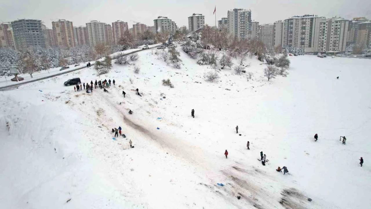 Talas Belediyesi tarafından 3 yıl önce yapılan düzenlemeyle kayak pisti haline getirilen alan, kar yağışıyla birlikte yine vatandaşların akınına uğradı. Yağan kar ve soğuk havaya rağmen kızağını, tepsisini, leğenini ve poşetini alan mahalle sakinleri kayak alanında doyasıya eğlendi.