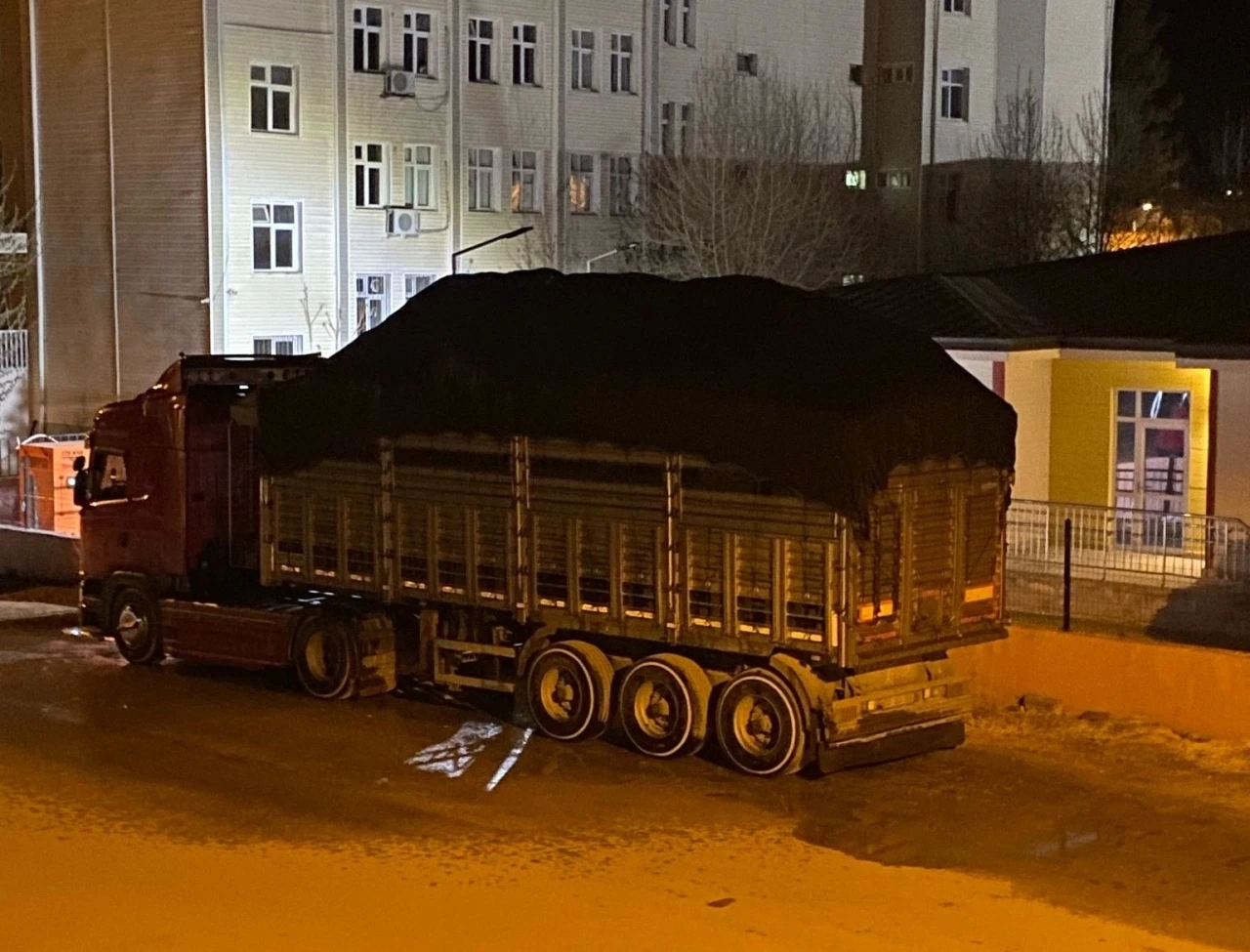 Adıyaman’ın Gölbaşı ilçesinde park halinde bulunan talaş yüklü bir tırın dorsesinden çıkan duman korkuttu.