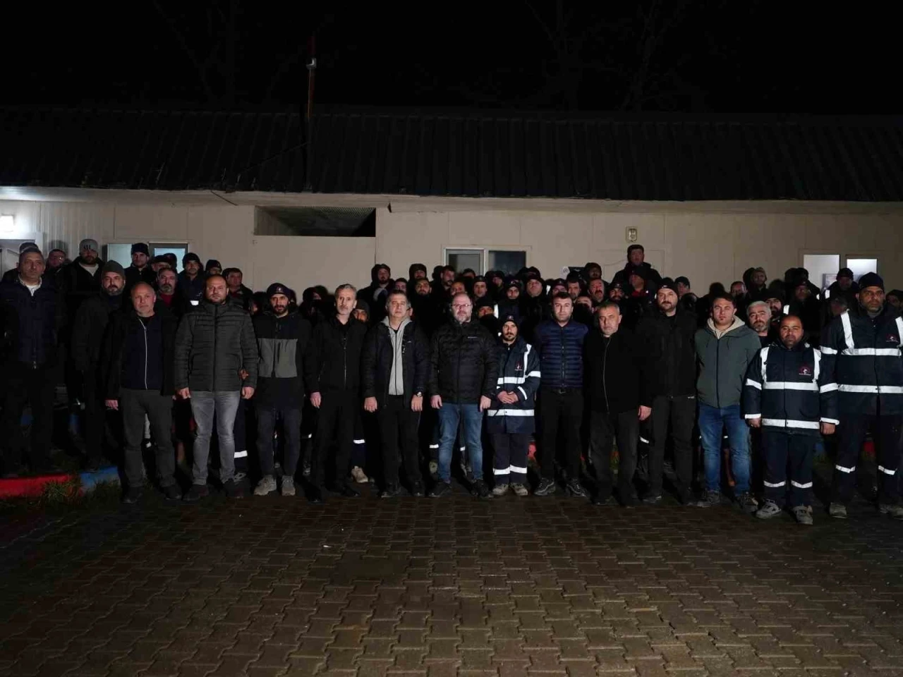 Düzce’de sabahın en erken saatlerinde sahaya çıkarak ‘Temiz Şehir Düzce’ için çalışan Düzce Belediyesi Temizlik İşleri Müdürlüğü personellerine moral ve motivasyon ziyareti gerçekleştirildi. Başkan Yardımcısı Barış Bayrak, İnsan Kaynakları İhtisas Şirketi BelKa Genel Müdürü Erdem Yılmaz ve Hizmet-İş Sendikası Düzce Şube Başkanı Ali Kemal Esen, temizlik işçileriyle bir araya geldi. Sabah saat 05.00’te gerçekleştirilen ziyarette, Temizlik İşleri Müdürü Mehmet Emin Tangüner de hazır bulunarak ekibin çalışma saatleri ve iş yükü hakkında bilgiler verdi. “Temiz şehir Düzce sizin eseriniz”