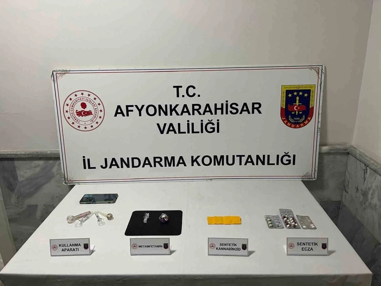 Edinilen bilgilere göre, İl Jandarma Komutanlığına bağlı ekipler H.K. isimli tır şoförünün çevre illerden temin ettiği uyuşturucu maddeleri kullandığı tırla Afyonkarahisar’a getirerek satacağı yönünde bilgi aldı. Ardından tırı takibe alan ekipler aracın karayolunda park ederek beklemeye başladığını belirledi. Ekipler bir süre sonra aracın yanına bir otomobilin geldiğini fark etti. Sahısları izleyen ekipler şüphelilerin uyuşturucu alışverişi yaptığını tespit etti. Ekipler ardından şahısları suçüstü yaptı. Tırda yapılan aramada ise 9 adet uyuşturucu hap, 6,57 gram metamfetamin, 297 içimlik sentetik kannabinoid (bonzai) emdirilmiş peçete ve 4 adet uyuşturucu kullanma aparatı ele geçirildi. Olayın ardından tır şoförü H.K ile uyuşturucu almaya geldiği iddia edilen Ş.Y., gözaltına alındı. Şahısların jandarmadaki işlemlerinin sürdüğü bildirildi