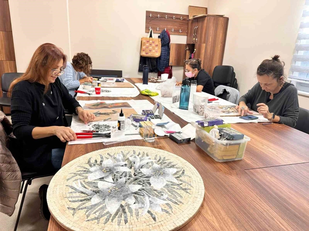 Ümraniye Belediyesi Geleneksel Sanatlar Akademisi bünyesinde düzenlenen Mozaik Kursu, sanatseverleri taşların büyülü dünyasıyla buluşturmaya devam ediyor. Beş yıldır ücretsiz olarak sunulan bu eğitim programında, mozaik sanatına ilgi duyan katılımcılar, taşları ustalıkla sanat eserine dönüştürüyor. Geleneksel sanatların yaşatılması ve yaygınlaştırılması amacıyla düzenlenen kurslarda, katılımcılara hem teorik hem de uygulamalı eğitimler veriliyor. Mozaik Kursu, akademi çatısı altında açılan pek çok sanatsal eğitimden sadece biri. Son yıllarda yapı ve dekorasyon alanında doğal taş kullanımının yaygınlaşması, mozaik sanatına olan ilgiyi de artırıyor. Bu ilgiden yola çıkarak düzenlenen kurs, Şehit Kaymakam M. Fatih Safitürk Kültür Merkezi’nde gerçekleştiriliyor. Temel ve ileri seviye olmak üzere iki farklı düzeyde sunulan eğitimlerde, doğada bulunan traverten, oniks, mermer, kaolin ve kil gibi doğal malzemeler işlenerek özgün eserler ortaya çıkarılıyor. Ayrıca cam, seramik, metal ve plastik gibi farklı materyallerle de mozaik çalışmaları yapılıyor. Her yıl Ümraniye Belediyesi Geleneksel Sanatlar Akademisi tarafından düzenlenen sanat sergileri sayesinde kursiyerler, eserlerini sanatseverlerle buluşturma, satışa sunma ve daha geniş kitlelere ulaşma imkânı yakalıyor. Mozaik kursuna katılan sanatçılar tarafından hazırlanan eserler, Ümraniye Belediyesi Kültür ve Sanat Merkezi’nde sergilendi. "Zamanın İzlerinde Sanata Yolculuk" isimli sergi, 15 Mart’a kadar sanatseverlerin ziyaretine açık olacak.