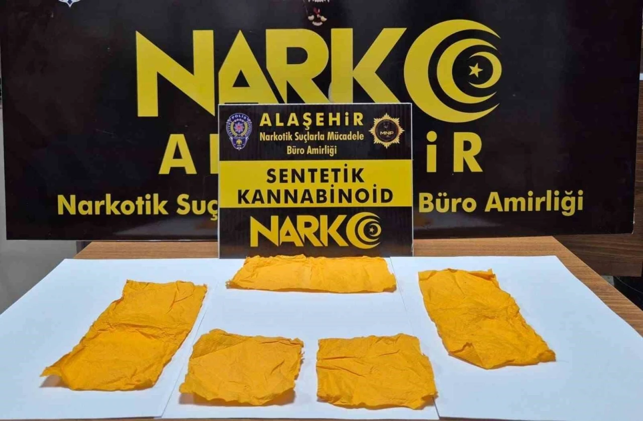 Narkotik Suçlarla Mücadele Şube Müdürlüğü Alaşehir Büro Amirliği ekipleri, Ramazan ayını fırsat bilerek Alaşehir’e yüklü miktarda uyuşturucu madde getireceği tespit edilen D.D. (18) isimli genci takibe aldı. Şahısın Sarıgöl ilçesinden otobüs ile Alaşehir ilçesine uyuşturucu madde getireceğinin öğrenilmesi üzerine yolda durdurulan otobüsten indirilen D.D.’nin yapılan üst aramasında 5 parça halde 3 bin 40 içimlik turuncu renkli peçeteye emdirilmiş sentetik kannobinoid maddesi ele geçirildi.