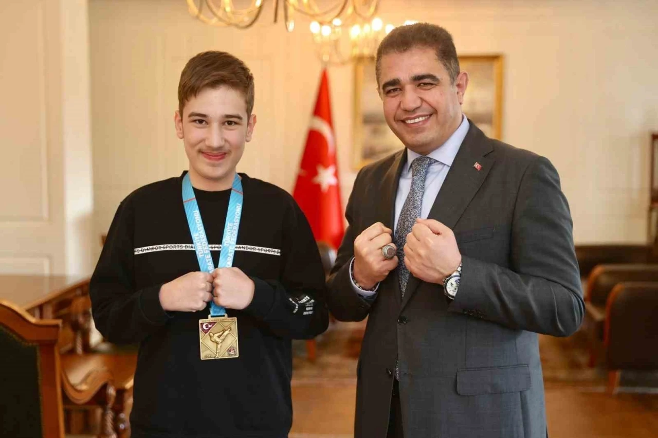 DÜZCE(İHA) – Düzce Valisi Selçuk Aslan, 2024 yılı Karate Kata dalında Türkiye ve Avrupa Şampiyonu olan 2025’te düzenlenen şampiyonada Türkiye şampiyonu olan Beyciler Ortaokulu Özel Eğitim öğrencisi Yasin Tekneci makamında ağırladı başarılar diledi.