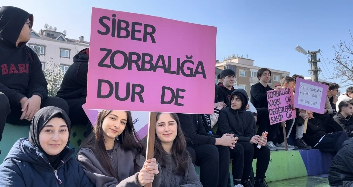 Bursa’nın Nilüfer ilçesinde yüzlerce öğrenci, son dönemde artan akran zorbalığına dikkat çekmek ve farkındalık oluşturmak için yürüdü. Akranlarının dikkatini çekmek isteyen öğrenciler, ellerindeki dövizlerle, büyüklere de dikkatli olmaları konusunda mesaj verdi.