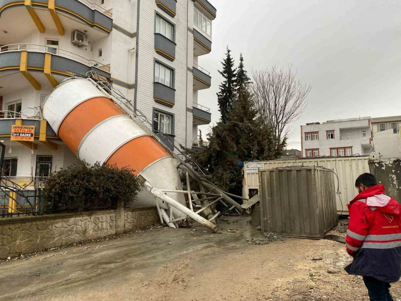 Adıyaman’da, beton silosu devrilerek balkonun üzerine düştü.