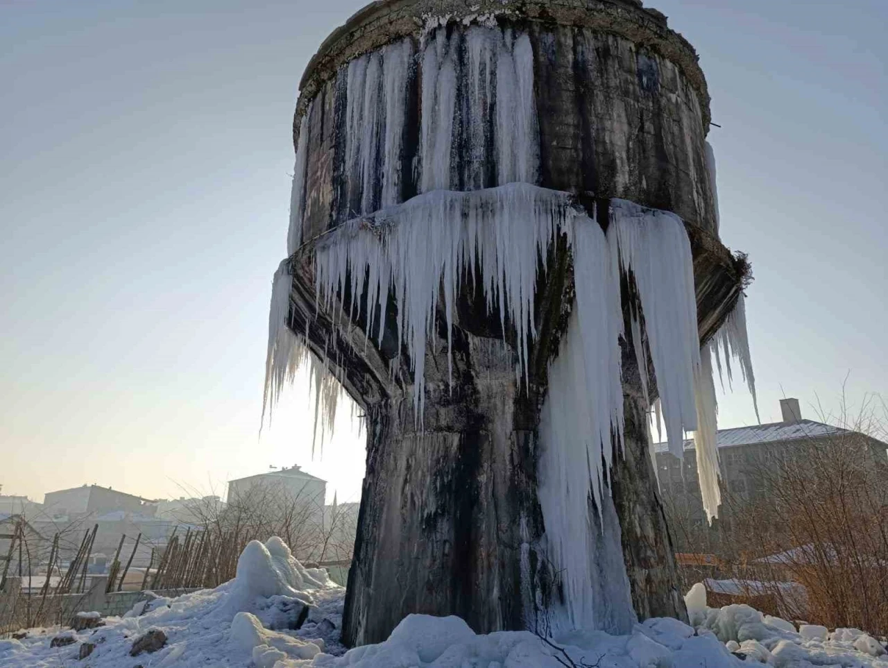 Gece saatlerinde hava sıcaklığının sıfırın altında 19 dereceye kadar düştüğü kentte, 20 metre yüksekliğindeki su deposunda metrelerce uzunlukta buz sarkıtları oluştu. Yaklaşık 15 metre uzunluğa ulaşan buz sarkıtları, kartpostallık manzaralar ortaya çıkardı.