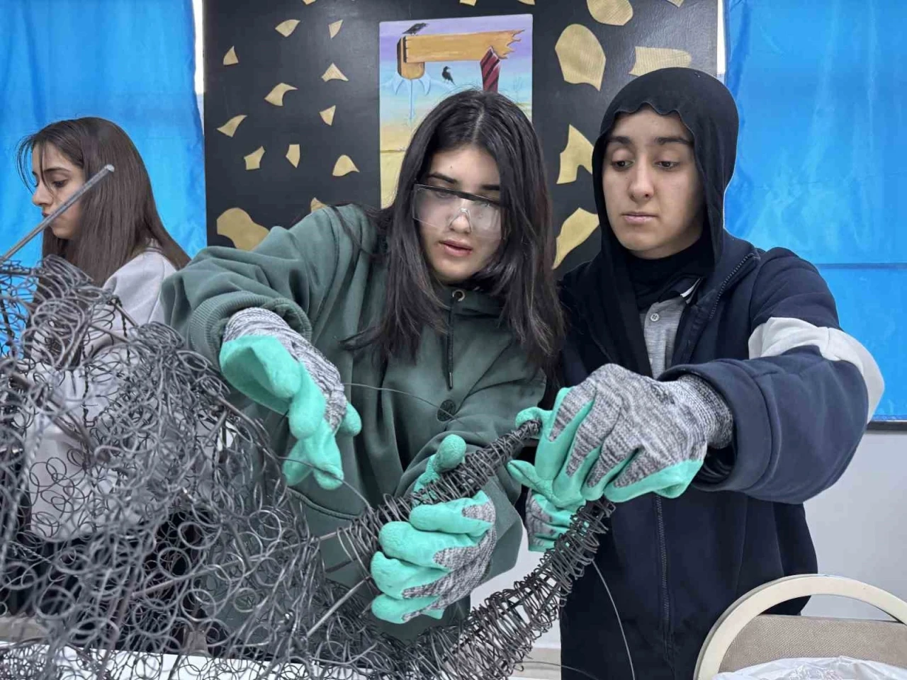 Erol Parlak Güzel Sanatlar Lisesi Görsel Sanatlar Öğretmeni Ahmet Kılıçaslan, geri dönüşümle sanat yapmanın önemini vurgulayarak, "Görsel sanatlar öğretmeni olmamın yanı sıra üç boyutlu derslere de giriyorum. Türkiye Yüzyılı Maarif Modeli’ne göre eğitim ortamları ve eğitimde işlenen konular yöreden yöreye farklılık gösterebilir. Biz de öğrencilerimizle yapacağımız çalışmaları belirlerken onların isteğine bırakıyoruz ve öğrencilere birkaç alternatif sunuyoruz. Öğrencilerimiz bizden tel çalışması yapmamızı istedi. Biz de bu yıl tel çalışması yaparak, öğrencilerimizin isteğini yerine getirdik. Aynı zamanda, çöp diye nitelendirilen eşyaları öğrencilerimizden alıp getirmelerini istiyoruz ve depolarımızda biriktirip, daha sonra bunları üç boyutlu derslerimizin herhangi bir kulvarında kullanıyoruz. Biz, çöpü bile sanata çevirmeyi öğrencilerimize öğretiyoruz. Öğrencilerimiz, batıda bir çocuğa göre malzemeye ulaşma konusunda biraz sıkıntı yaşıyor. Bu durumda, bizim çöpten sanata mantığımız devreye giriyor ve bu malzemeleri kendi tekniklerimizle birleştirip sanata çeviriyoruz. Eskiden öğrenciler bu bölümlere çok az geliyorlardı. Ama günümüzde, öğrencilerimiz artık resim bölümüne çok fazla ilgi duyuyor. Yetenek sınavları yaparken, her yıl 100’ün üzerinde öğrenci katılımı oluyor ve bazen seçim yaparken zorlanıyoruz. Okulumuzu daha cezbedici hale getirmek için okulumuzu adeta bir sanat galerisine dönüştürdük. Okulumuzun başarı durumu, ilde bulunan diğer okullara göre çok üst düzeyde çünkü bizim kurslarımızda hazırladığımız öğrenciler, Türkiye’nin farklı illerinde bulunan üniversitelere gidebiliyorlar. Başarı oranımız bu durumda yüzde 90’ı gösteriyor. Okulumuzda bulunan görsel sanatlar öğretmenleri olarak, yazın tatil yapmak yerine öğrencileri yetenek sınavlarına hazırlamak için başlarında bekliyoruz" şeklinde konuştu. "Geri dönüşüm, öğrencilerimize farkındalık kazandırıyor"