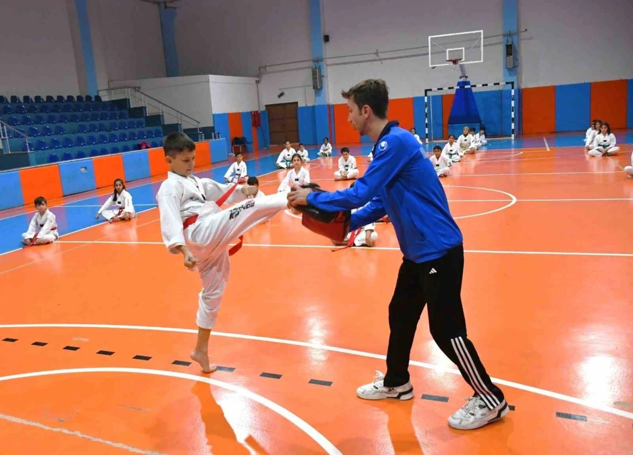 Yunusemre Belediyespor’un minik tekvandocular adım adım büyümeye ve gelişmeye devam ediyor. Mavi-beyazlı kulübün Akgedik Mahallesi’nde oluşturduğu tekvando altyapı grubu, gerçekleşen sınavla yeni kuşaklarına kavuştu. Türkiye Taekwondo Federasyonu takviminde bulunan 2024 yılının 3. Dönem Kuşak Terfi Sınavı’nın komisyonunda Kulüp Başkanı Bülent Kanik, yönetici Sercan Tunç, genel koordinatör Güliz Onater, antrenörler Serap Aydeniz ve Eren Şerifler ile Nazmiye Günlü yer aldı. Velilerin büyük ilgi gösterdiği sınava katılan sporcular, başarılı olarak bir üst kuşağa terfi etmenin mutluluğunu yaşadı. Sporculara kuşaklarını takan Kulüp Başkanı Bülent Kanik, törende yaptığı konuşmada, sınava katılan tüm sporcuları ve onların daima yanında olan ailelerini ve antrenörlerini tebrik etti. Çocukların olumlu gelişiminden memnun olduklarını kaydeden Kanik, her geçen gün büyüyen bir aile olduklarını ifade ederek, el birliğiyle yapılacak altyapı çalışmaları neticesinde gelecekte ulusal ve uluslararası müsabakalara damga vuran şampiyonlar çıkarmak istediklerini söyledi.
