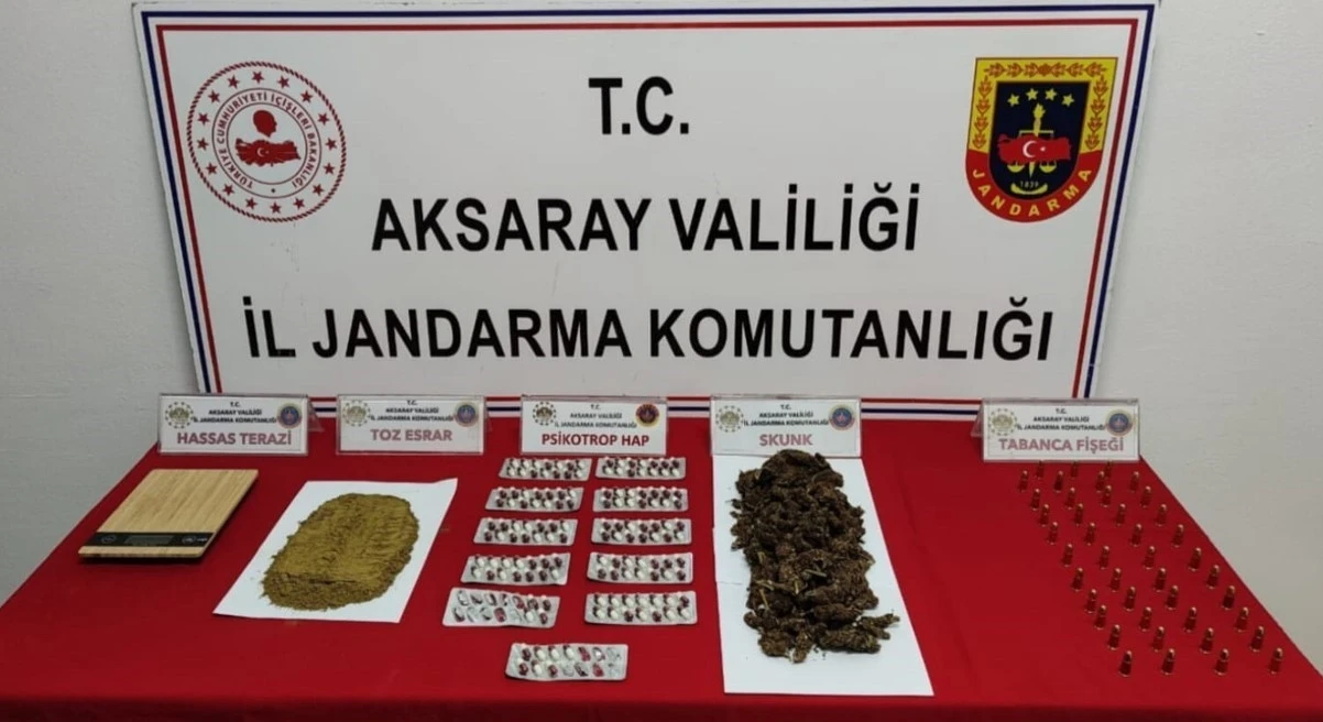Operasyon, Aksaray merkezde bir ikamete yönelik gerçekleştirildi. Edinilen bilgiye göre, uyuşturucuyla mücadele çerçevesinde çeşitli çalışmalar yapan Aksaray İl Jandarma Komutanlığına İstihbarat Şubesi, Kaçakçılık ve Organize Suçlarla Mücadele (KOM) Şubesi ekipleri 2 şahsın uyuşturucu imal ve ticaretini yaptığı bilgisine ulaştı. Bilgiler doğrultusunda Aksaray Cumhuriyet Başsavcılığı koordinesinde harekete geçen jandarma KOM ve istihbarat ekipleri isimleri ve ikamet adresleri belirlenen E.B. ve S.Ş. isimli şahısları takibe aldı. Bir süre yapılan teknik ve fiziksel takibin ardından yeterli delile ulaşan jandarma ekipleri operasyon için düğmeye bastı. Aksaray merkez ilçede bir ikamete yönelik gerçekleştirilen operasyonda 2 şüpheli de kıskıvrak yakalanarak gözaltına alınırken, ikamette yapılan aramalarda bin 415 gram metamfetamin, 774 gram skunk, 386 gram toz esrar, 21 gram bonzai, 144 adet uyuşturucu hap, 2 adet uyuşturucu kullanma aparatı, 2 adet hassas terazi ve 43 adet tabanca fişeği ele geçirildi. Jandarmadaki işlemlerinin ardından Aksaray Adliyesine sevk edilen 2 şüpheli çıkarıldıkları mahkemece tutuklanarak cezaevine gönderildi.