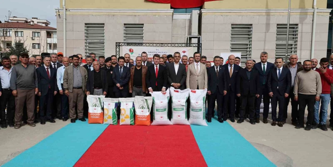 Amasya’da çiftçilere toplam 13 milyon TL değerinde kuraklığa dayanıklı yağlık ayçiçeği ve nohut tohumu desteği sağlandı. Yüzde 50 hibeli 21 bin 40 dekar alanda ekilecek bin 52 torba ayçiçeği tohumu ve 4 bin 625 dekar alanda ekilecek 55 bin 500 kilo nohut tohumu düzenlenen törenle çiftçilere dağıtıldı.