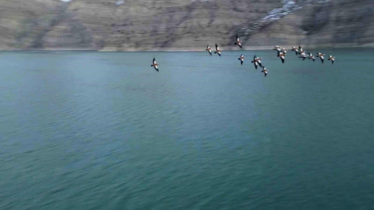 Erzurum’un Uzundere ilçesinde bulunan Tortum Gölü, göçmen kuşların uğrak noktalarından biri olmaya devam ediyor. Son yıllarda göç etmeyi bırakıp bölgede üremeyi tercih eden angıt kuşları, gölün semalarında görsel bir şölen sunuyor.