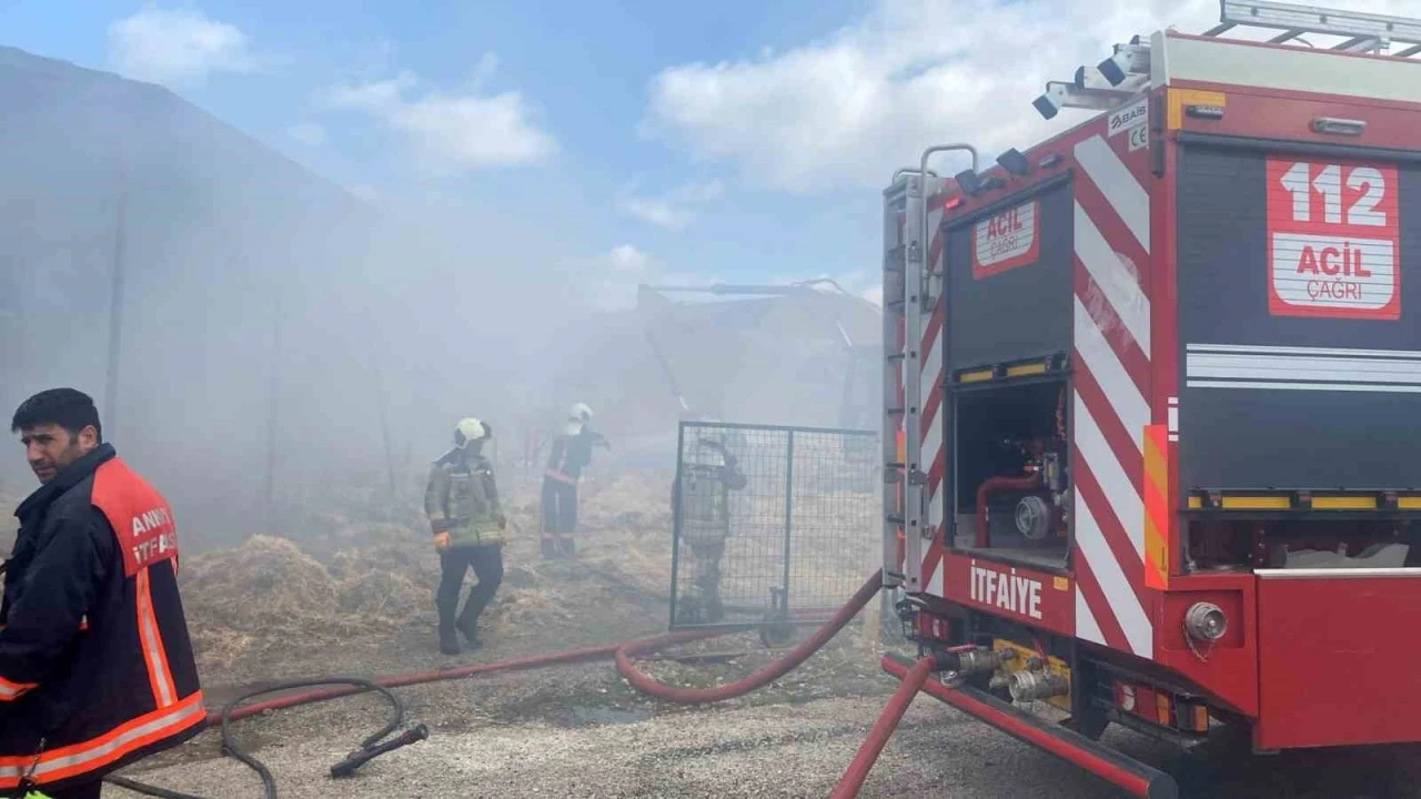 Ankara’nın Akyurt ilçesinde bir ahırda saman balyalarının tutuşmasıyla yangın çıktı.