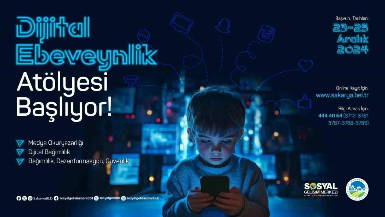 Sakarya Büyükşehir Belediyesi tarafından düzenlenen “Dijital Ebeveynlik Atölyesi” kapılarını açıyor. Sosyal Gelişim Merkezi tarafından ebeveynlere yönelik hazırlanan atölyede, medya okuryazarlığından dijital bağımlılığa, çevrim içi güvenlikten dezenformasyona kadar pek çok önemli konu ele alınacak. Eğitimde dijital çağın gerekliliklerine uyumlu bir yaşam için önemli bilgiler aktarılacak, ipuçları verilecek. Hem teorik hem de uygulamalı çalışmaların yer alacağı atölyede, katılımcıların maksimum verim alabilmesi için kontenjanlar sınırlı olacak.