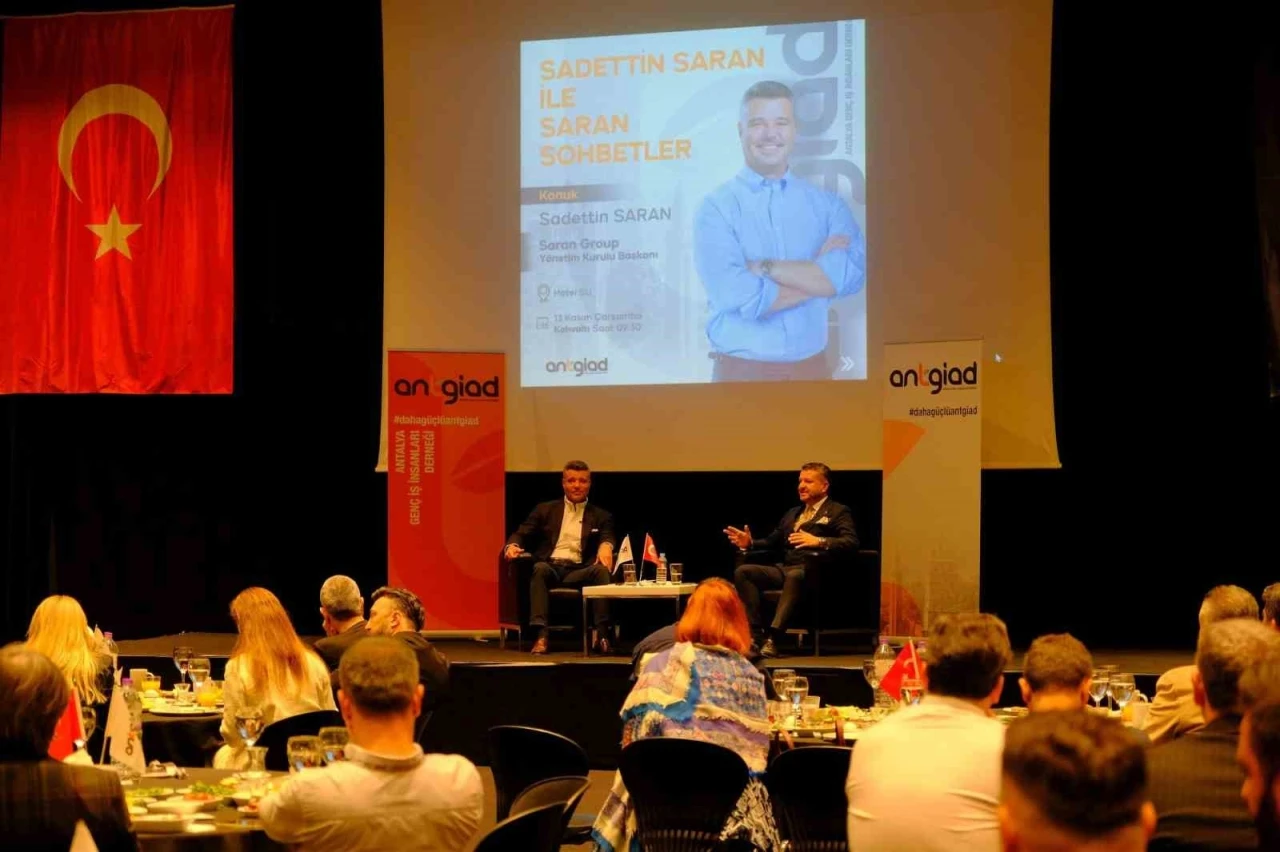 Antalya Genç İş İnsanları Derneği (ANTGİAD), Konyaaltı ilçesinde düzenlediği kahvaltılı etkinlikte iş dünyasının önde gelen isimlerinden Sadettin Saran’ı ağırladı. ANTGİAD Başkanı Ercan Yavaş’ın moderatörlüğünde gerçekleşen ve “Sadettin Saran ile Saran Sohbetler“ başlığını taşıyan söyleşi, ANTGİAD üyelerinin yoğun katılımıyla gerçekleşti.