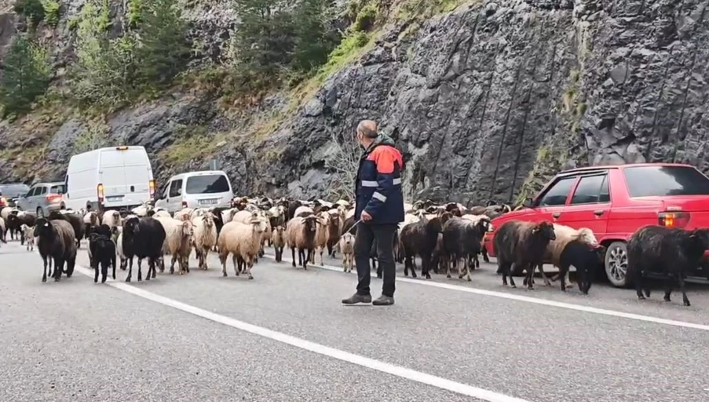 Artvin’in Kemalpaşa ilçesinden Ardahan’ın Küçük Ova Yaylası’na doğru yola çıkan yaylacılar, 600 koyunluk sürüleriyle 2 aylık zorlu yolculuklarına başladı. Yolculuk boyunca karayolunu kullanan sürü, özellikle Borçka-Artvin güzergahında trafiğin yavaşlamasına neden oldu. Ancak sürücüler ve yolcular, bu eşsiz manzaraya kayıtsız kalmayarak bol bol fotoğraf çekti.