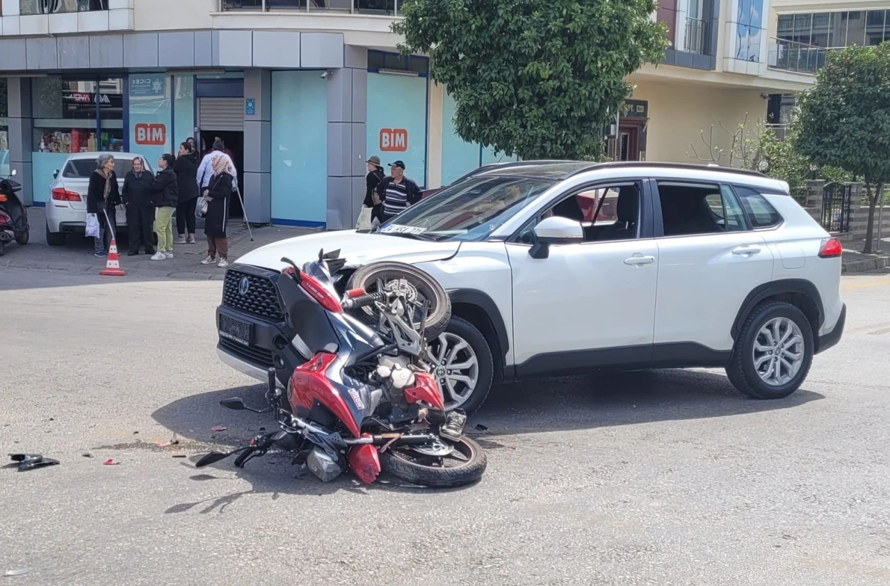 Aydın’ın Efeler ilçesinde meydana gelen trafik kazasında, motosiklet sürücüsü yaralandı. Kaza Turgut Özal Bulvarı ile Taşlıboğaz Bulvarı kesişimindeki kavşak içerisinde meydana geldi. Edinilen bilgiye göre, 34 HSA 221 plakalı araç ile 09 ANC 614 plakalı motosiklet kavşak içerisinde çarpıştı. Çarpışmanın şiddeti ile motosiklet sürücüsü yola savruldu. Kaza ihbarı üzerine bölgeye sağlık ve polis ekipleri sevk edildi. Vücudunda kırıklar olduğu öğrenilen motosiklet sürücüsü ambulansla Aydın Devlet Hastanesi’ne kaldırıldı. Kazayla ilgili soruşturma sürüyor.