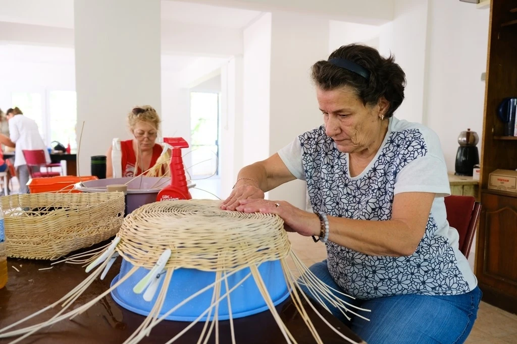 Balıkesir’in Ayvalık ilçesinde; mahalle evleri çatısı altında kadınların ürettiği birbirinden renkli el emeği göz nuru ürünler ilgi görmeye devam ediyor.
