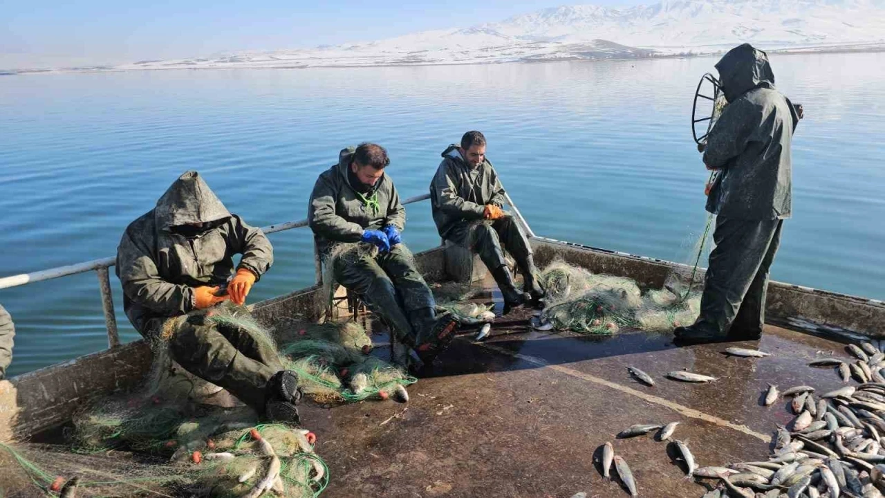 Van’ın Erçek Gölü’nde, yalnızca Van Gölü Havzası’nda yaşayan endemik inci kefali balığının zorlu kış avcılığı başladı.