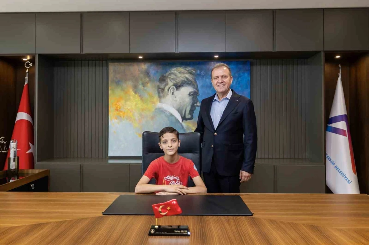 Öğrenciler, 23 Nisan Ulusal Egemenlik ve Çocuk Bayramı kapsamında Başkan Vahap Seçer’i ziyaret etti. Bayram sevincini paylaşmak üzere Seçer’i ziyaret eden öğrenciler anlamlı bir deneyim yaşadı. Misafirlerini karşılayan Seçer, 23 Nisan Ulusal Egemenlik ve Çocuk Bayramı kutlamaları kapsamında koltuğunu çocuklara devretti. Makam koltuğuna oturan öğrenciler, kente ve çocuklara dair gerçekleşmesini istedikleri talepleri Seçer’e iletti. Çocukların taleplerini dinleyen Seçer, 23 Nisan’ın çocuklara armağan edilmesinin ne kadar anlamlı olduğunu vurguladı. Ziyarette, Akdeniz İlçe Milli Eğitim Müdürü Saim Demir, Akdeniz Fatih İlkokulu Müdürü Dilek Göl ve öğrenciler İlayda Özyar, Yasin Çiftçi, Yasmin Almansour, Çınar Yardımcı ve öğretmenleri Gamze Berk yer aldı. "Bizlerden sonra birileriniz başkan olacak"