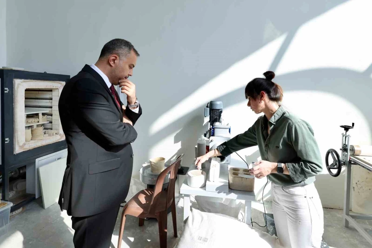 Kahramanmaraş Onikişubat Belediye Başkanı Hanifi Toptaş, Arasta Çarşısı’nda başlatılan Seramik Biçimlendirme Kursunu ziyaret ederek kursiyerlerle bir araya geldi. Başkan Toptaş, kursiyerlerle sohbet ederek süreç hakkında bilgi aldı ve ortaya çıkan eserleri inceledi.