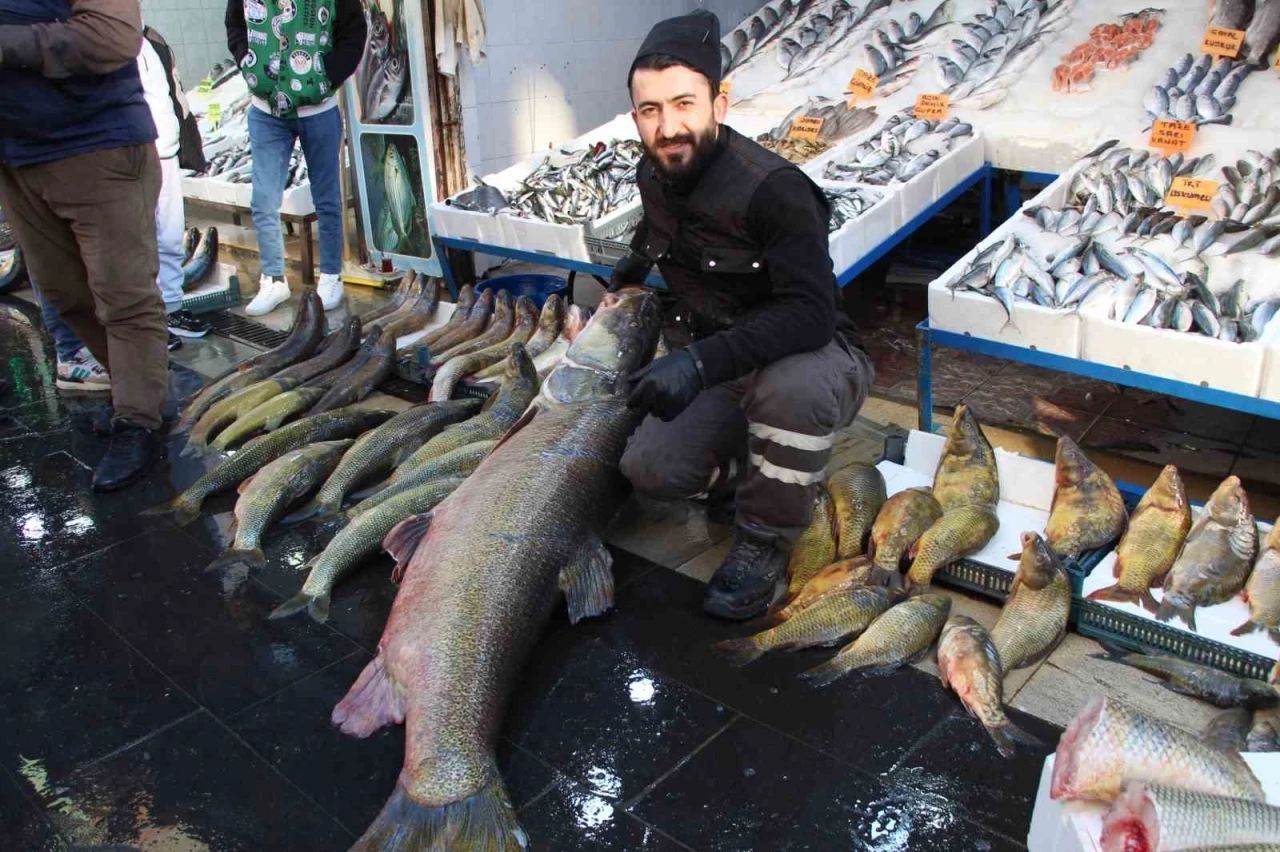 Kentte uzun yıllardır balıkçılık yapan Feyzullah Altuner, bu büyüklükte bir balığın nadir bulunduğunu ifade ederek, "Balık çeşitlerimiz günlük ve taze gelmekte. Özellikle çay balığı, deniz balığı olmak üzere ortalama 25-30 çeşit balık bulunmakta. Tezgahta sattığımız bu balık Elazığ Keban Barajı’ndan geldi.100-120 kilo arasında olup boyu yaklaşık 1 metre 65 santim uzunluğunda. Kilosunu 350 liradan satıyoruz" dedi.