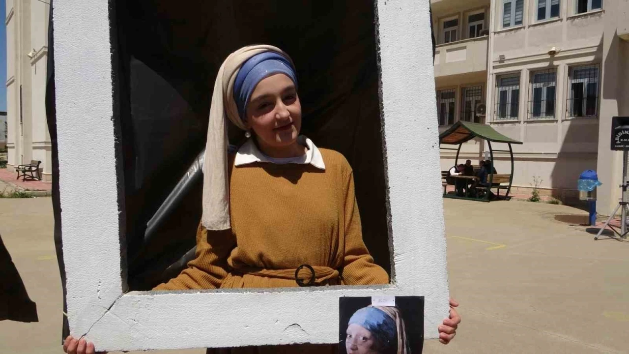 Projede yer alan öğrencilerden Eda İş gören, Mona Lisa tablosunu canlandırdığını belirterek, "Mona Lisa, Rönesans döneminde Leonardo da Vinci tarafından yapılmış ve İtalya’nın Floransa şehrinde sergilenmiştir" diye konuştu.