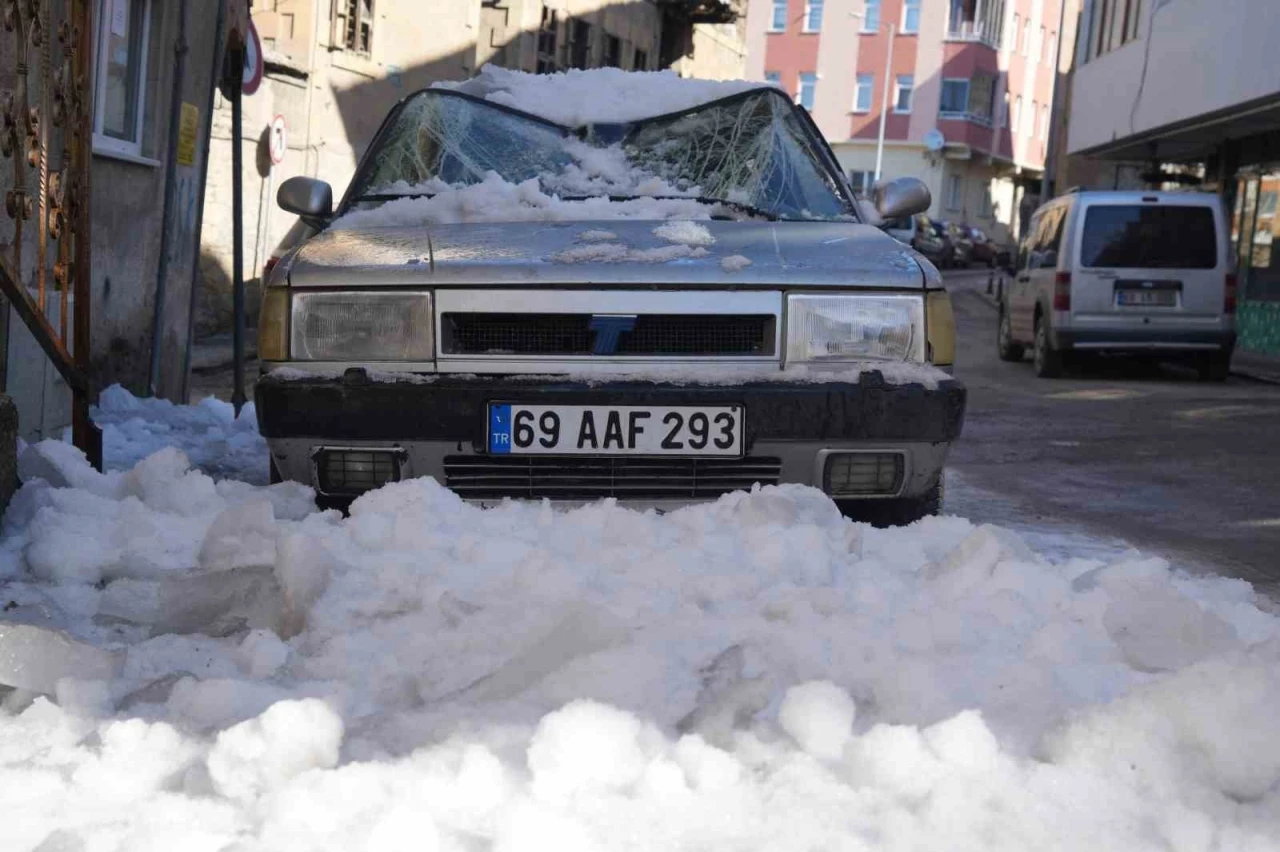 Olay, Velişaban Mahallesi, Yavuz Selim Caddesi’nde yaşandı. Yunus Temur adına kayıtlı 69 AAF 293 plakalı aracın üzerine gece saatlerinde çatıdan kar ve buz kütlesi düştü. Aracın tavanı, kapıları, ön ve arka camları kullanılamaz hale gelirken, devasa kar kütlesi aracı pert etti.