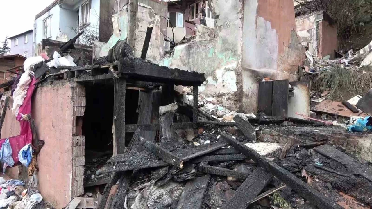 Öte yandan, yangın dolayısıyla harabeye dönen ev görüntülendi.
