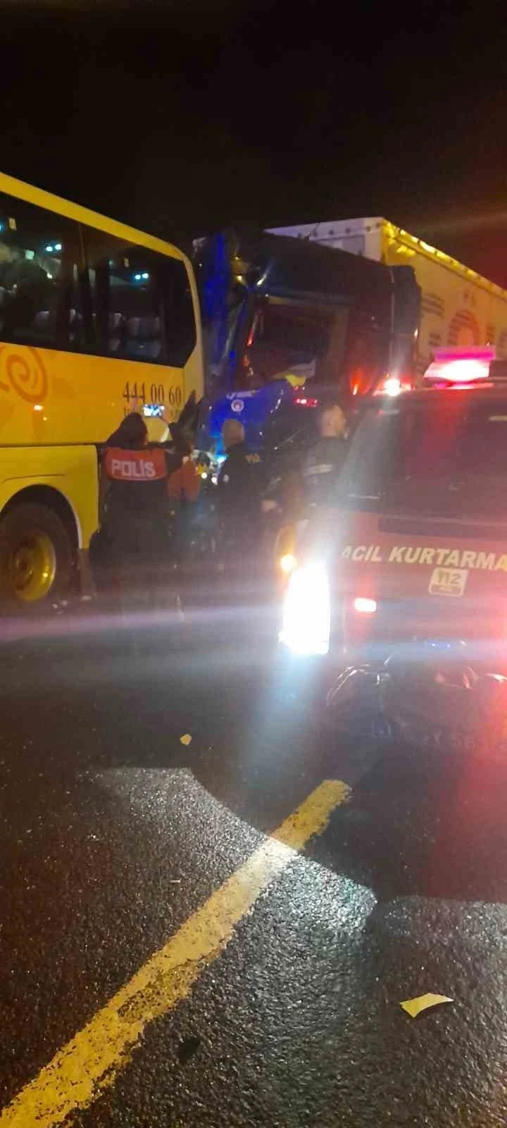 Kaza, gece saatlerinde meydana geldi. Bursa istikametinden Eskişehir yönünde ilerleyen M. F. idaresindeki 60 BD 791 plakalı tur otobüsü Bozüyük’te arızalandı. Arızayı gidermek için emniyet şeridinde duran otobüse aynı istikamette ilerleyen O.Ö.’nün kullandığı 34 CVE 347 plakalı tır arkadan çarptı. Çarpmanın etkisiyle otobüste bulunan 1 öğretmen, 15 öğrenci, yedek şoför ile tır şoförü yaralandı. İhbar üzerine olay yerine sağlık, polis ve itfaiye ekipleri sevk edildi. Hastaneye kaldırılan yaralıların sağlık durumlarının iyi olduğu öğrenilirken, her iki araçta maddi hasar oluştu.