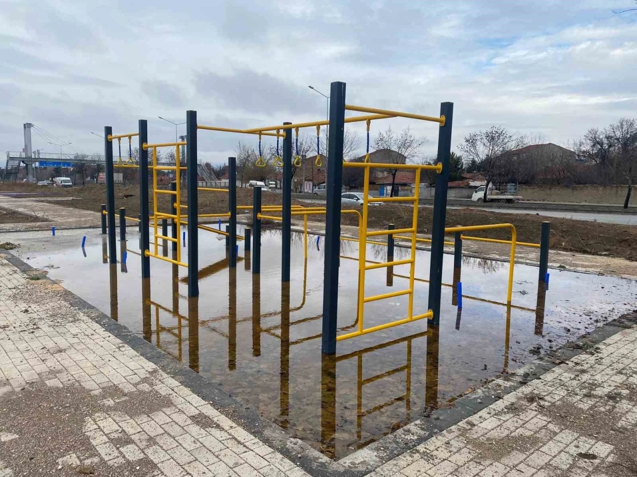 Eskişehir’de yol kenarında yer alan ve oyun alanları bakımsız otların arasında kaybolmuş, yoğun su birikintileri ile dikkati çeken çocuk parkı alanı görenleri hayrete düşürüyor.