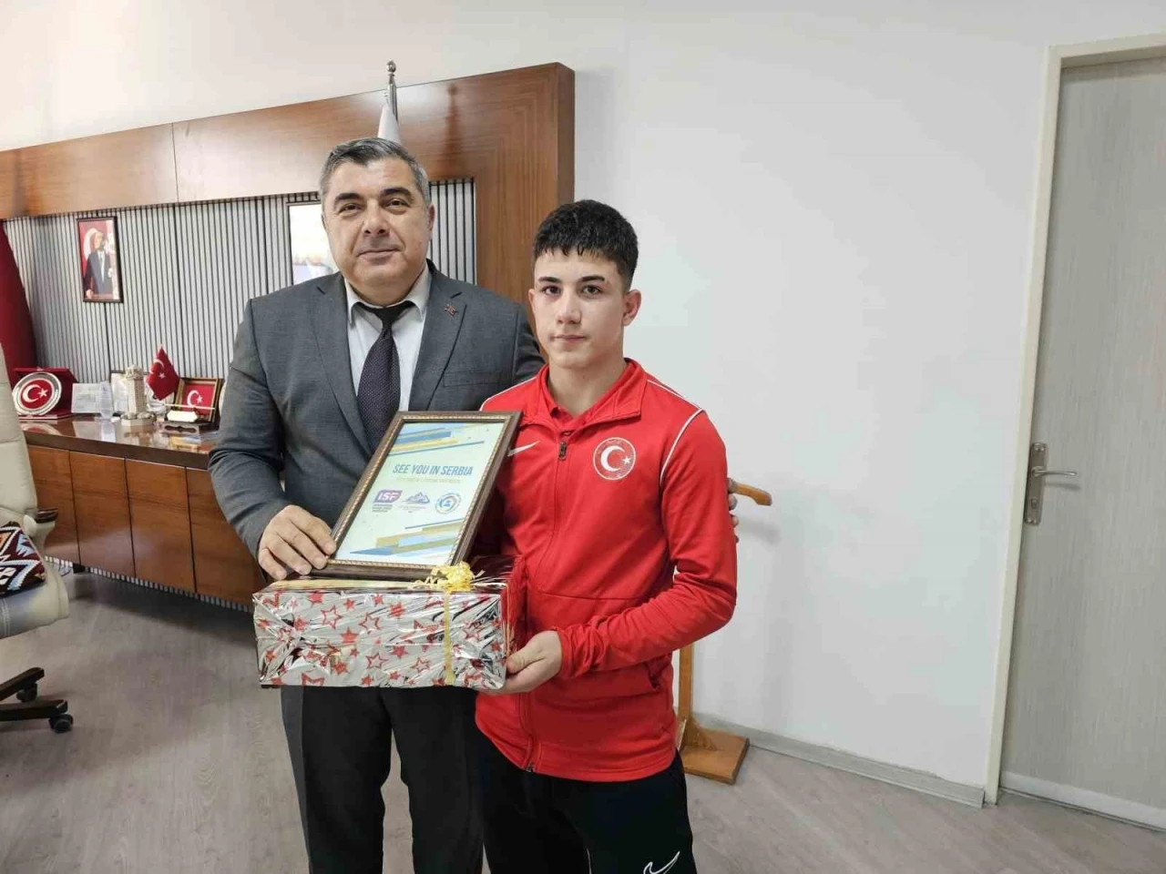4-14 Nisan 2025 tarihlerinde Sırbistan’da düzenlenecek olan Okul Sporları Dünya Şampiyonası’na katılmaya hak kazanan Afyonkarahisar Spor Lisesi öğrencisi Arif Bulut, okul idarecileriyle birlikte İl Milli Eğitim Müdürü Miraç Sünnetci’yi makamında ziyaret etti.