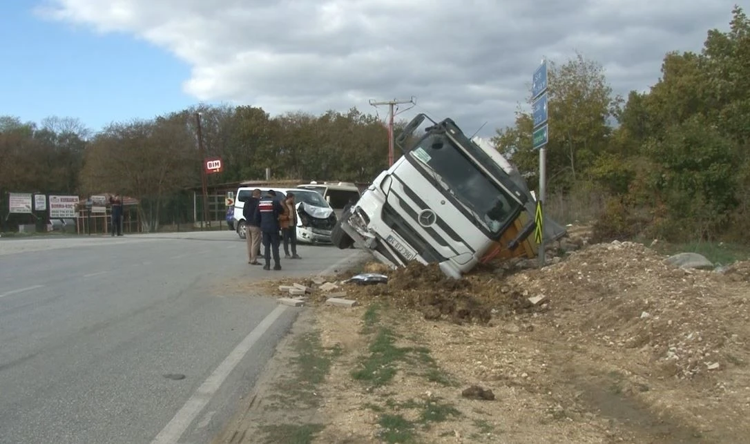 Kaza, saat 09.30 sıralarında İhsaniye Mahallesi İstanbul Caddesi’nde meydana geldi. Edinilen bilgilere göre, kavşaktan ana yola çıkan A.E. kontrolündeki 34 EBU 696 plakalı minibüse, yoldan gelen E.Ç. kontrolündeki 34 GIJ 396 plakalı hafriyat kamyonu çarptı. Kazanın ardından taş yüklü kamyon savrularak yol kenarına devrilirken, minibüste bulunan Haydar E. adlı yolcu yaralandı. İhbar üzerine olay yerine jandarma ve sağlık ekipleri sevk edildi. Olay yerine gelen sağlık ekiplerinin ilk müdahalesinin ardından yaralı, ambulansla hastaneye kaldırıldı. Devrilen kamyon nedeniyle trafiğe kapanan yol, jandarma ekiplerinin çalışması sonucunda kısmi olarak açıldı.