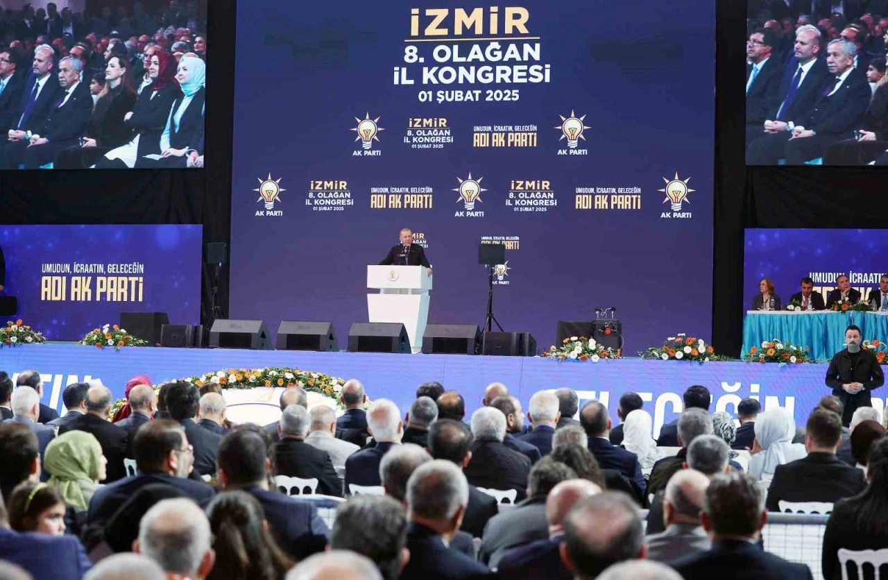 Cumhurbaşkanı Recep Tayyip Erdoğan, AK Parti 8’inci Olağan İl Kongresi’ne katılmak üzere İzmir’e geldi. Halkapınar Spor Salonu’nda düzenlenen kongrede partililere seslenen Erdoğan, "İzmir’i temsil etmeyi beceremeyenler bu şehrin ülkenin içeride ve dışarıda yürüttüğü mücadelelere kayıtsız bir yer olduğu itibarını vermek için de özel bir gayret sergiliyorlar. Halbuki İzmir yıllarca mazlumların derdiyle dertlenmiş yüreğini de toprağını da onlara açmış bir şehirdir. Osmanlı’nın son döneminde Ege’nin muhtelif yerlerinde Balkanlardan Kafkaslardan diğer yerlerden evlerini terk edip gelmek zorunda kalan yüz binler milyonlar önce İzmir’e sığınmıştır. Bir kısmı ülkenin başka yerlerine gitse de önemli bir bölümü de İzmir’i kendine yeni vatan olarak seçmiştir. Aynı şekilde ülkemiz içinde nüfus hareketlerinin çok arttığı dönemlerde İzmir; Mardin’den Erzurum’a Konya’dan Kars’a Afyon’dan Ağrı’ya Sivas’tan Balıkesir’e kadar pek çok farklı şehirden insanların yeni yuvası olmuştur. Gerisinde nice acı hikayeleri nice umut arayışlarını barındıran böylesine bir demografik zenginliğe sahip İzmir’in gündemini Türkiye’den ayrıştırmaya kalkmak en hafif tabiriyle gaflettir" dedi.