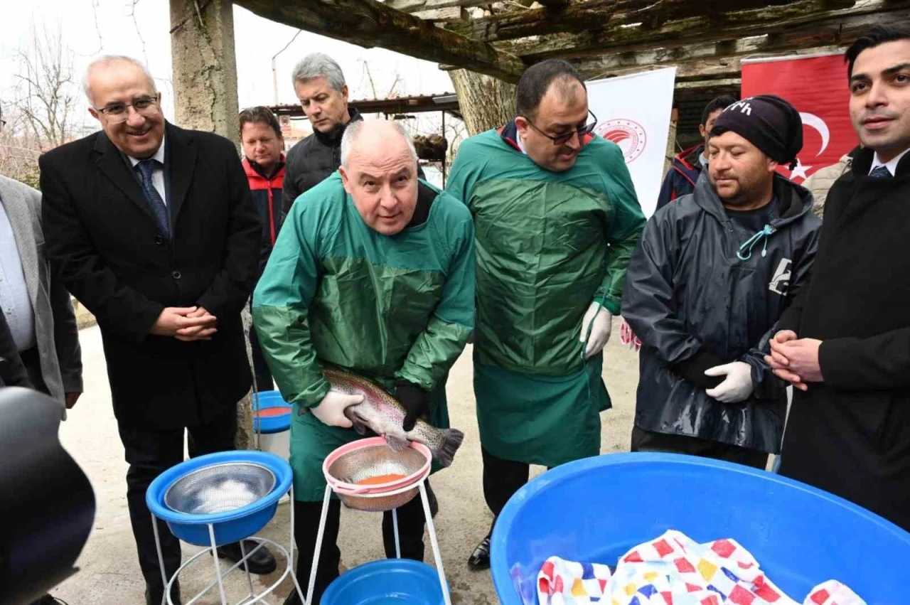 Denizli Valisi Ömer Faruk Coşkun, Çameli ilçesindeki alabalık üretim tesislerini ziyaret ederek balık yumurtası sağımı gerçekleştirdi.