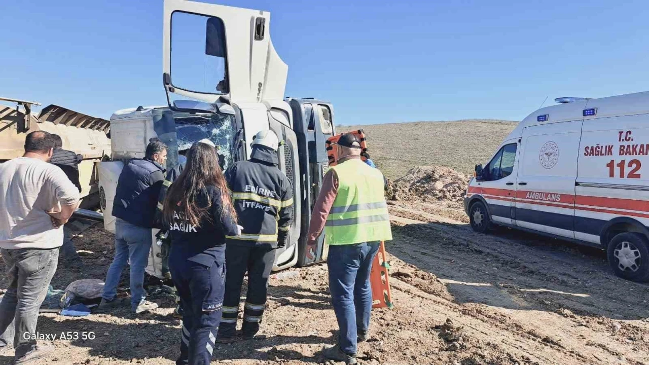 Edirne’de devrilen kamyonun sürücüsü yaralandı.