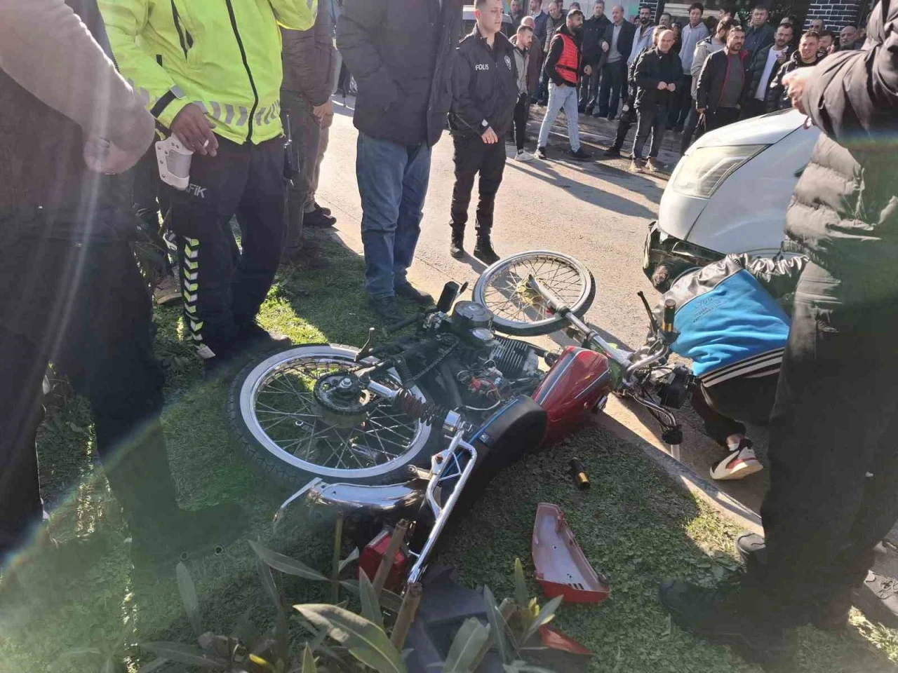 Kaza yapan motosiklet sürücüsünün durumunun iyi olduğu öğrenilirken, olaya ilişkin inceleme başlatıldı.