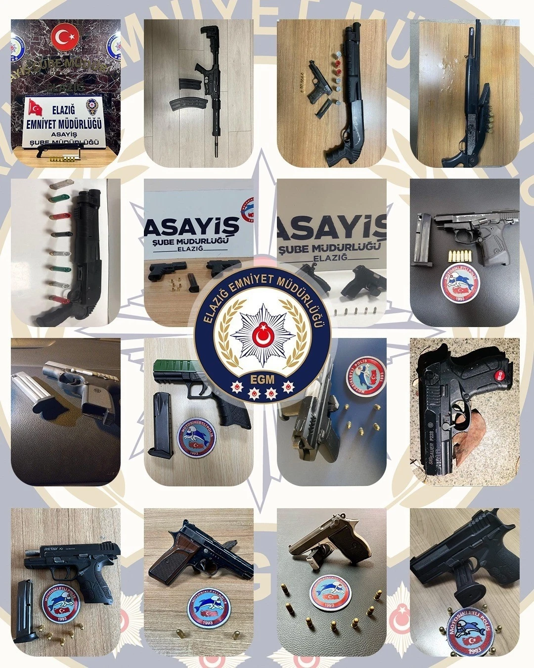 Elazığ Cumhuriyet Başsavcılığı Koordinesinde İl Emniyet Müdürlüğü ekipleri tarafından genel güvenlik ve genel asayişin sağlanması, suça konu unsurların tespiti ve şüpheli şahısların yakalanmasına yönelik son iki hafta içerisinde yapılan çalışmalarda ruhsatsız tabanca-tüfek taşıyan 22 şahıs yakalandı. Çalışmalarda 17 adet ruhsatsız tabanca ve tabancalara ait 103 adet fişek, 5 adet ruhsatsız tüfek ve 36 adet kartuş olmak üzere toplam 22 adet ruhsatsız ateşli silah ve bu silahlara ait 139 adet fişek ele geçirildi.