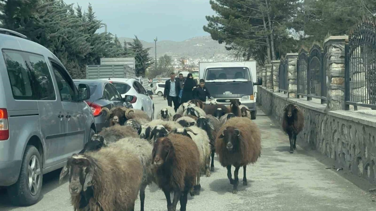 Elazığ şehir merkezinde yoğun trafik sırasında bir koyun sürüsü aniden yola çıkarak araçların durmasına neden oldu. Sürü çobanlarının müdahalesiyle koyunlar güvenli bir şekilde yolun karşısına geçirilirken, o anlar cep telefonu kameralarına yansıdı.