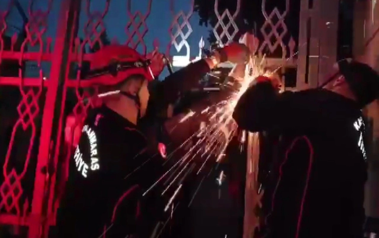Kahramanmaraş’ta demir kapıdan atlarken eli demire saplanan genci itfaiye kurtardı.