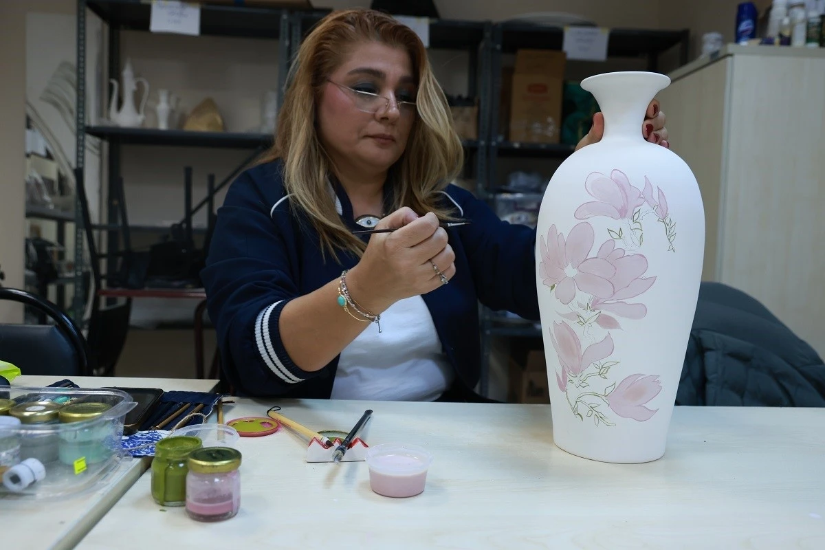 Kocaeli’de tarihi oldukça eskiye dayanan, Türk kültür ve sanatıyla özdeşleşmiş olan çini işlemeciliği kursları ile emekli kadınlar iş sahibi oluyor.