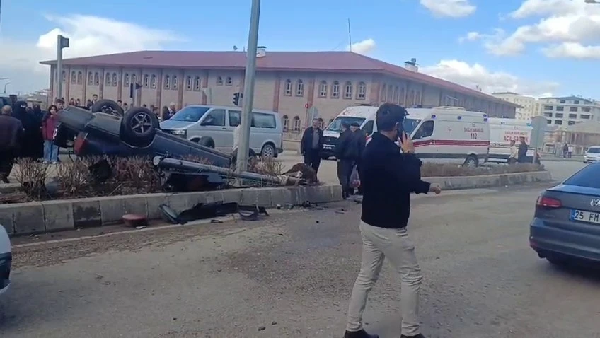 Erzurum’da meydana gelen bir trafik kazasında araç takla attı, araç bulunan şahıslar yaralandı.