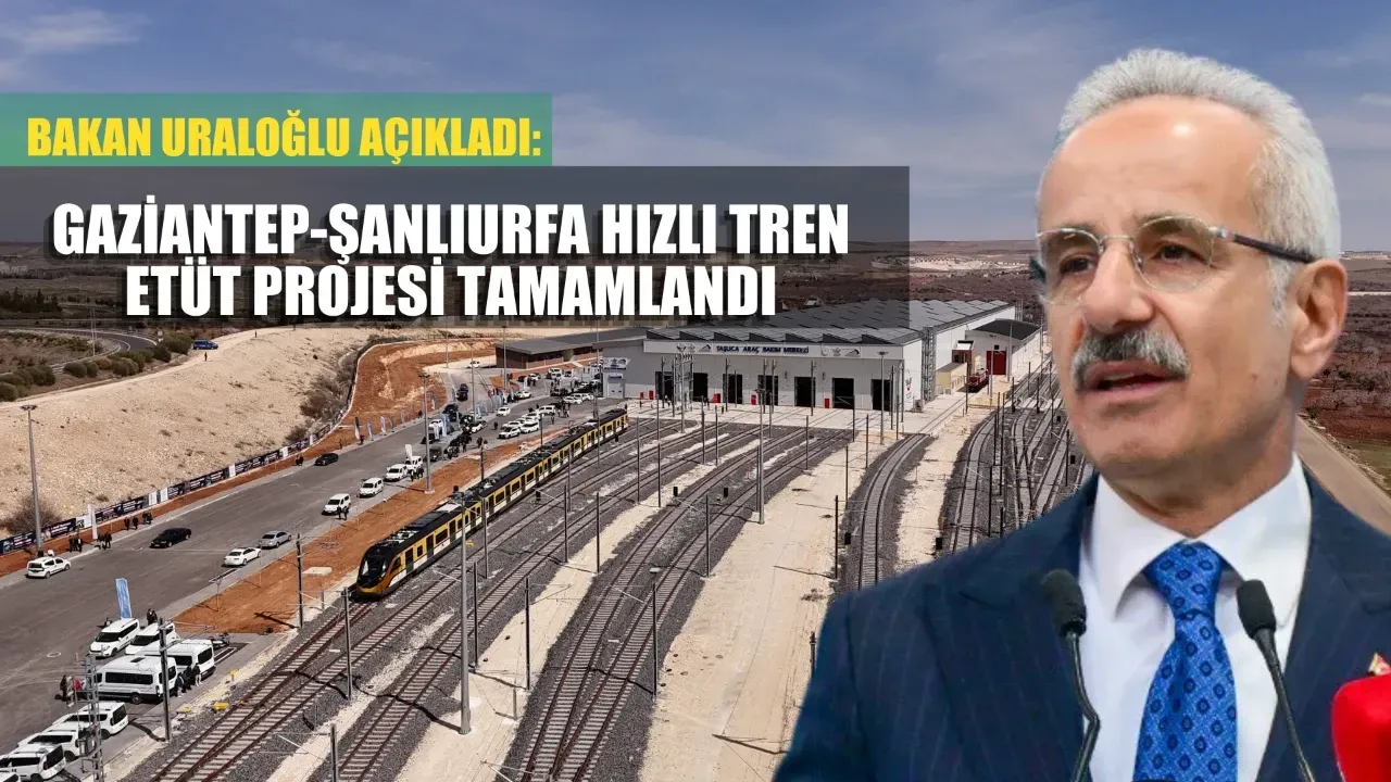 Bakan Uraloğlu, "Gaziantep-Şanlıurfa Hızlı Tren Etüt Projesini de tamamladık ve yatırım programına aldık. En kısa sürede bu projemizin de yapım ihalesini yapmayı planlıyoruz" diye konuştu.