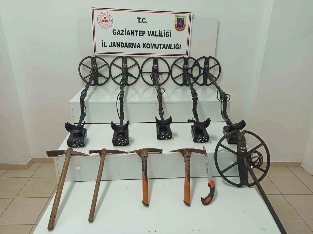 Gaziantep İl Jandarma Komutanlığı ve Cumhuriyet Başsavcılığı koordinesinde tarihi eser kaçakçılığının önlenmesine yönelik çalışma yapıldı. Araban ilçesinde yapılan çalışmalar neticesinde, define bulmak amacıyla izinsiz kazı yaptığı tespit edilen M.G., M.O., M.G., E.Ç. ve M.M.G. isimli 5 şüpheli suçüstü yakalandı. Yapılan aramalarda ise suçta kullanılan dedektör ve kazı malzemeleri ele geçirildi.