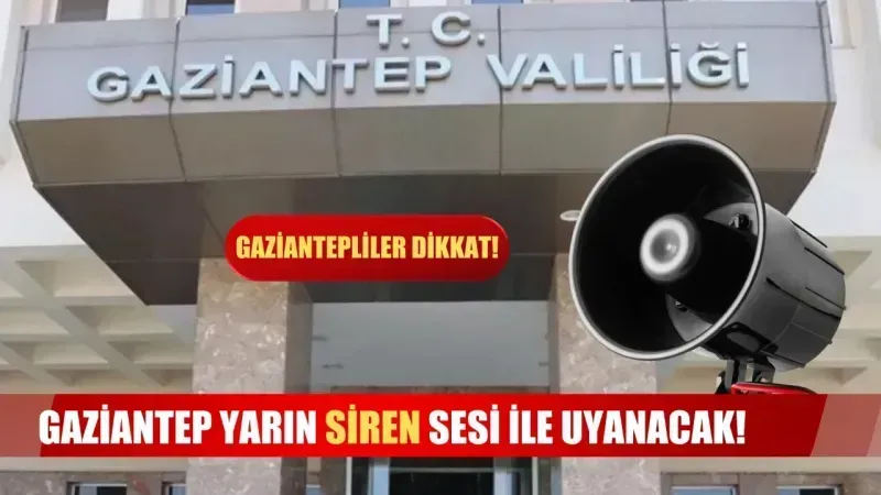 Gaziantep Valiliği'nin sosyal medya hesabından yapılan açıklamasında şu bilgilere yer verildi. 05.11.2024 Salı günü saat 10:00-11.00 saatleri arasında 10 Kasım Atatürk'ü Anma günü hazırlığı nedeni ile İl geneli siren sistemi deneme çalışması yapılacaktır diyerek vatandaşları bilgilendirdi.