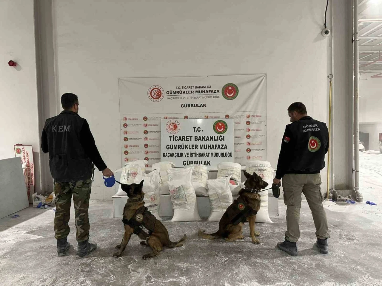 Ticaret Bakanlığından yapılan açıklamaya göre, Gümrükler Muhafaza Genel Müdürlüğü birimlerince yürütülen uyuşturucu kaçakçılığı ile mücadele çalışmaları neticesinde Gürbulak Sınır Kapısı’nda rekor miktarda uyuşturucu ele geçirilerek zehir tacirlerine bir darbe daha indirildi. İran’dan Türkiye’ye giriş yapan 3 tır aracı Gürbulak Gümrük Muhafaza Kaçakçılık ve İstihbarat Müdürlüğü ekiplerince riskli kategoride değerlendirilerek detaylı kontrole tabi tutuldu. Gerçekleştirilen x-ray taramasında söz konusu araçlarda şüpheli yoğunluk tespit edilmesi üzerine, narkotik dedektör köpeklerden de faydalanılarak gerçekleştirilen arama neticesinde talk pudrasına emdirilmiş vaziyette 706 kilogram ve bitki köklerine gizlenmiş vaziyette 3 ton 797 kilogram olmak üzere 4 buçuk tonu aşkın metamfetamin cinsi uyuşturucu madde ele geçirildi.