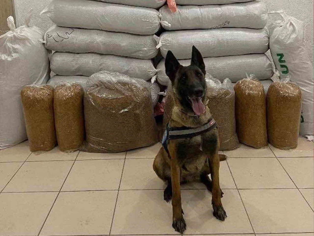 Hassas burun "Alkış" otobüste 520 kilogram kaçak tütün buldu