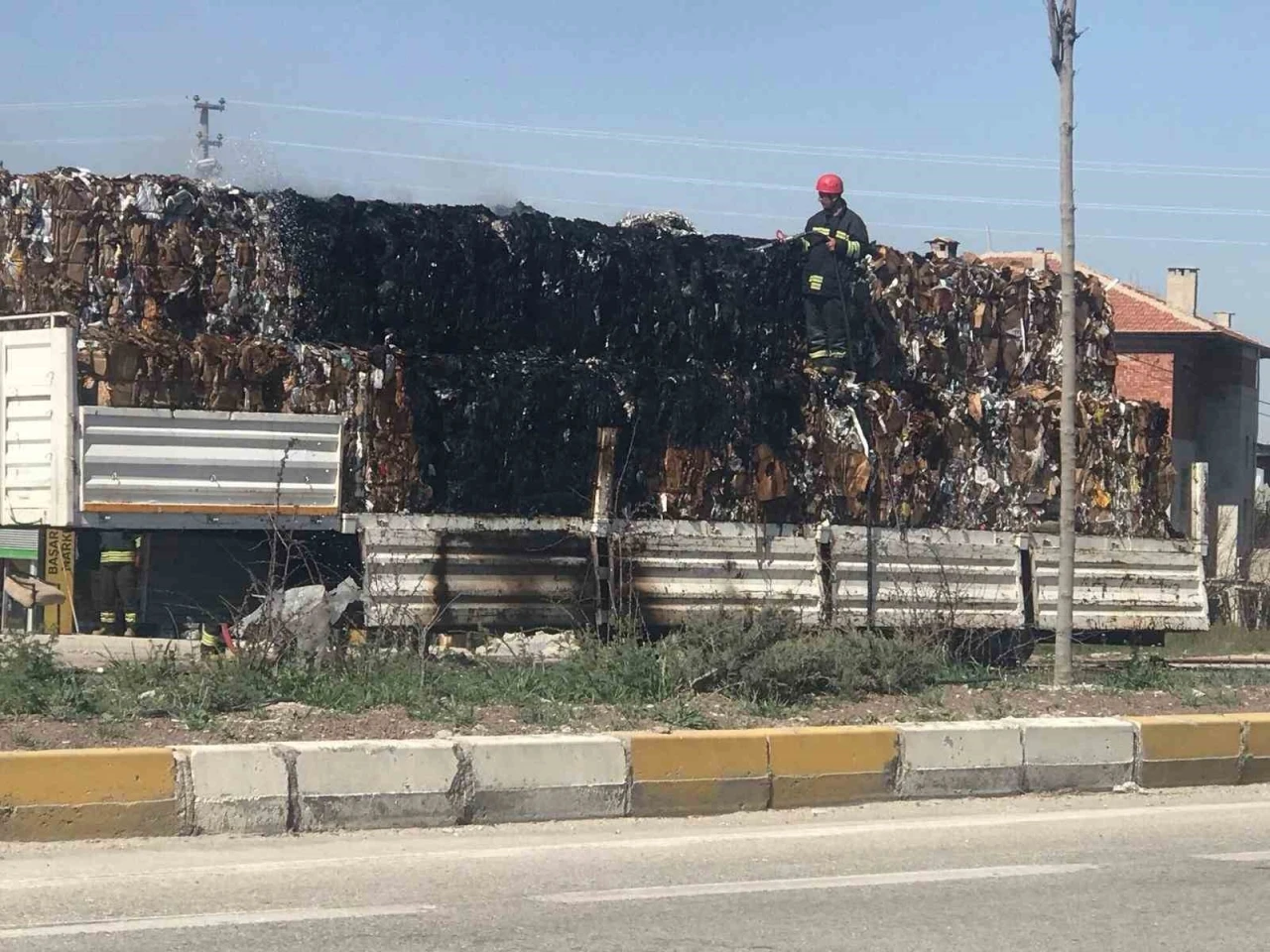 Hurda ve kağıt taşıyan tırın dorsesinde yangın